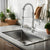 Gemaakt van massief roestvrij staal, weerstaat onze Keukenkraan hoge waterdruk, waardoor lekkages en scheuren worden geminimaliseerd. Geniet van langdurige betrouwbaarheid en prestaties in uw moderne keukenopstelling.